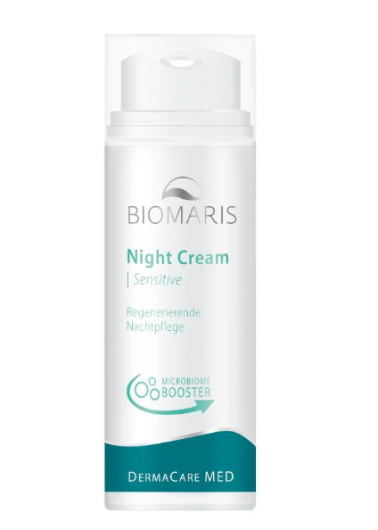 Biomaris Night Cream Sensitive is een rijke, regenererende nachtcreme voor de droge en gevoelige huid. De water-in-olie-emulsie beschermt dagelijks tegen schadelijke invloeden uit de omgeving, remineraliseert en revitaliseert het de huid. De toevoeging van Biomaris Microbiome Booster versterkt het natuurlijke microbioom van de huid, bevrijdt deze van schadelijke micro-organismen en leidt tot een gezonde, evenwichtige huidflora. De nachtcreme kalmeert de huid, vermindert jeuk en huidirritaties en ondersteunt daarnaast de regeneratie van de natuurlijke huidbarriere.