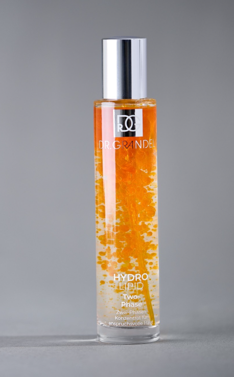 Dr Grandel Hydro Lipid Two-Phase uit de serie Hydro Lipid, is een intensief vochtinbrengend product voor de veeleisende huid: twee gescheiden fases, een vocht (hydro)- en een vet (lipid)-fase ontplooien door het schudden van de flacon. Dr Grandel Two-Phase verhoogt het vochtgehalte van de huid en stimuleert tegelijkertijd de lipidesynthese. De huid wordt soepeler en gaat er jonger uitzien.