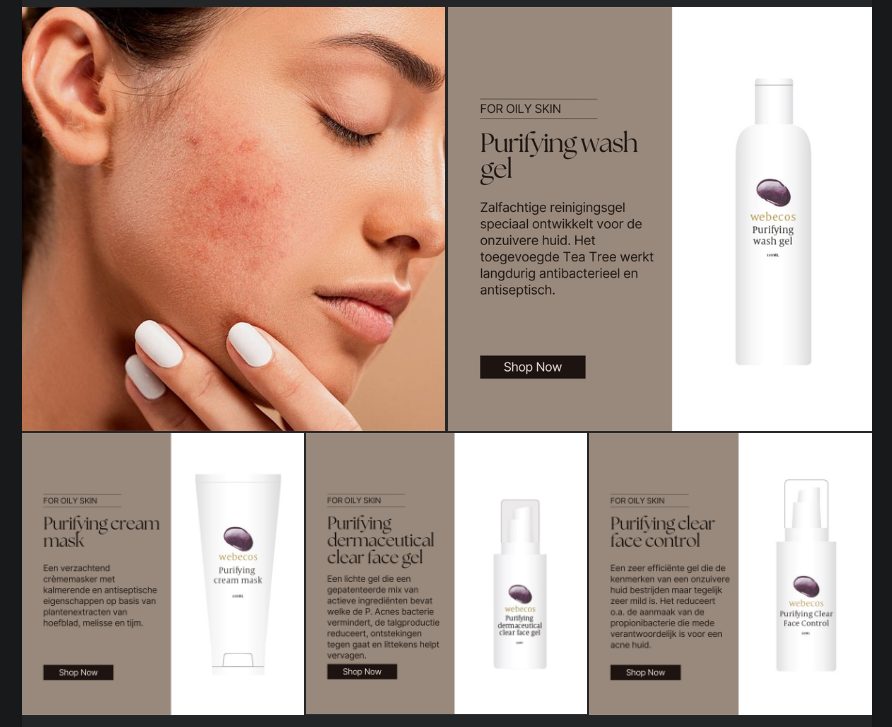 Webecos Purifying Clear Face Gel is goed te gebruiken in combinatie met de Purifying Wash Gel en Purifying Clear Face Control.